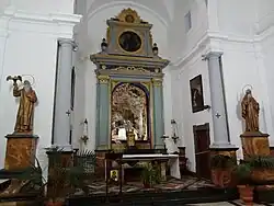 Die neoklassizistische Klosterkapelle auf einem kreuzförmigen Grundriss ist frei zugänglich und kann besichtigt werden. Der Hauptaltar besteht aus Marmor, die Skulpturen stammen von Adrià Ferrà.[2] Neben den Fresken in der Kuppel von Francesc Parietti, bemalten Kacheln in der Vorhalle und einer Gemäldesammlung von Manuel Bayeu, dem Schwager von Francisco de Goya, ist eine Christusfigur zu sehen, die den Mönchen bei der Weihe der Ermita im Jahre 1806 durch den Kardinal Antonio Despuig (1745 - 1813) geschenkt wurde. Sie gehörte zuvor dem Kapuzinerorden in Palma.[3] Das dunkle Holzkruzifix steht in einem rechtsseitigen Seitenaltar. Die Statue des „Christus der Agonie“ wird von den Einwohnern Artàs sehr verehrt und ist jeden 1. Mai Ziel einer Wallfahrt.