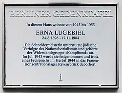 - ↑ Gedenktafeln in Berlin: Erna Lugebiel. Abgerufen am 14. Juli 2025.