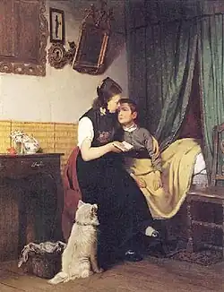 - Stubeninterieur mit Großmutter und Enkel (1864)