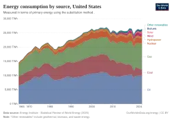 - ↑ Energy consumption by source. Our World in Data, archiviert vom am 11. Juli 2025; abgerufen am 2. August 2025 (englisch).