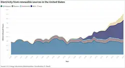 Nach vorläufigen Daten der US Energy Information Administration betrug der Anteil der erneuerbaren Energien in den Vereinigten Staaten am gesamten Primärenergieverbrauch im Jahr 2022 etwa 13,1 %[1] und etwa 21,5 %[1] des produzierten Stroms in den Vereinigten Staaten. Seit 2019 ist Windenergie die größte erneuerbare Energiequelle im Land und erzeugte 2022 rund 10,2 % des Gesamtstroms.[2]