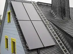 Im Jahr 2013 deckten Erneuerbare Energien ca. 9 Prozent des gesamten deutschen Wärmebedarfs. Über 300.000 Holzpelletheizungen, knapp 500.000 Wärmepumpen und etwa 1,8 Millionen Solarthermieanlagen sind in bzw. auf deutschen Häusern installiert.[6] Im Zuge der Energiewende soll dieser Anteil nach Zielen der Bundesregierung bis 2020 auf 14 Prozent erhöht werden und der Wärmebedarf von Gebäuden um 20 Prozent reduziert werden (gegenüber 2008). Bis zum Jahr 2050 soll der Gebäudebestand nahezu klimaneutral sein. Dazu müssen der Energieverbrauch der Gebäude adäquat gesenkt und gleichzeitig der Ausbau erneuerbarer Energien zur Wärmenutzung vorangetrieben werden.[7] Allerdings verlief die Entwicklung zuletzt eher schleppend, bei einem von 2008 bis zuletzt 2013 sogar leicht gestiegenen Wärmebedarf. Nur eine von fünf Heizungen entspricht in Deutschland heute dem Stand der Technik. Die Investitionen in Erneuerbare Energien im Gebäudesektor sind sogar rückläufig, so das Bundesumweltministerium.[1]