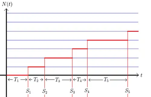 die Anzahl aller , für die die -te Erneuerungszeit den Zeitpunkt noch nicht überschritten hat. Der so definierte stochastische Prozess heißt der Erneuerungsprozess.