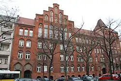 Der viergeschossige Backsteinbau wurde 1901/02 nach Entwürfen des Architekten Hermann Weigand errichtet, das Gebäude der Vorschule in den Jahren 1906/07 nach Entwürfen von Reinhold Kiehl.[6] Das Schulgebäude ist heute denkmalgeschützt[6] und wurde in den Jahren 2012 bis 2018 grundsaniert.[3]
