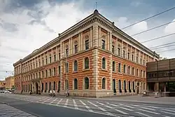 Der dreigeschossige Bau mit vier Gebäudeflügeln wurde in den Jahren 1870 bis 1872 nach Plänen des Berliner Architekten Friedrich Hitzig erbaut. Die Fassade verkleidete er mit gelbem Ziegelmauerwerk, das rote Bänder akzentuieren. Die Ecken des Hauses sind als Risalite ausgeführt, die nur wenig aus der Bauflucht hervortreten. Das Obergeschoss erhielt ein umlaufendes Geschosssims mit Pilastern, angelehnt an Vorbilder aus der Antike. Darüber folgt ein weit auskragendes Dachgesims, das Aktroterien aus Sandstein schmücken. Der an der Joachimstraße verlaufende Flügel wurde 1970 als Kopie rekonstruiert.[1]