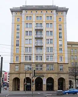 Zunächst als „Stalinallee“ bezeichnet, erhielt die Straße 1956 den Namen des ersten Präsidenten der DDR, Wilhelm Pieck. Als Randbebauung entstanden monumentale fünf- und achtgeschossige Großbauten im Stil des Sozialistischen Klassizismus nach dem Vorbild der Berliner Stalinallee (später: Karl-Marx-Allee). Für den Bau wurden auch erhaltene historische Gebäude beseitigt, darunter die bedeutende gotische Pfarrkirche St.-Ulrich-und-Levin, die am 5. April 1956 gesprengt wurde. Ihr Platz blieb eine Rasenfläche.