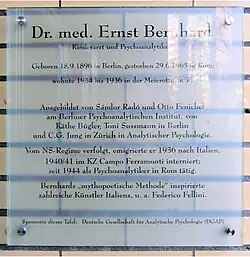 1940 wurde Bernhard verhaftet und in einem KZ in Kalabrien inhaftiert, aus dem er im Folgejahr dank des Eingreifens von Giuseppe Tucci freigelassen wurde.[2] Bernhard kehrte zurück nach Rom und lebte während der Nazi-Besatzung versteckt.[3] Nach Kriegsende nahm er seine Tätigkeit als Psychoanalytiker wieder auf und behandelte u. a. Federico Fellini, Natalia Ginzburg, Giorgio Manganelli, Cristina Campo, Roberto Bazlen, Luciano Emmer, Vittorio De Seta und Adriano Olivetti.