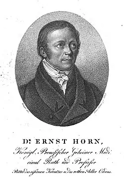 - Hans Schneider: Ernst Horn (1774–1848), Leben und Werk, ein ärztlicher Direktor der Berliner Charité an der Wende zur naturwissenschaftlichen Medizin. Dissertation, FU Berlin 1986.