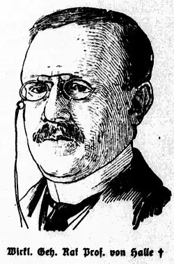 Von Halle wurde 1906 zum Geheimen Admiralitätsrat ernannt. Er war a.o. Professor für Nationalökonomie an der Friedrich-Wilhelms-Universität Berlin und Honorarprofessor an der Technischen Hochschule Charlottenburg. 1908/1909 unternahm er eine Studienreise in die Vereinigten Staaten.