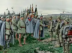 - Der Kaiser überreicht den Helden von Nowo-Georgiewsk das Eiserne Kreuz, 1915, 52 × 70 cm, Gouache auf Papier[3]