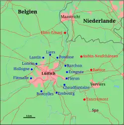 | Ort | Stadt Lüttich bzw. die die Stadt umgebenden Forts | ||||||||||||||||