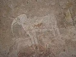 In der C1-Periode der Jungsteinzeit (zwischen 4400 und 1200 v. Chr.) werden im südlichen Afrika Steinwerkzeuge, Steinkerne, Straußeneierschalen, Keramik sowie erste Felsmalereien und -ritzungen angefertigt.[13] Im Erongogebirge zeugen solche Felsmalereien und Werkzeugfunde davon, dass schon in der Jungsteinzeit Teile des Gebirges – wie überhaupt die trockenen Landstriche Südwestafrikas – zumindest temporär besiedelt waren und Vorfahren der heutigen San und Damara schon vor tausenden von Jahren Lebensraum und Heimat waren. Besonders im niederschlagsarmen Winter stellten die wasserundurchlässigen Pfannen im Erongo-Granit, die sich in der Regenzeit füllen, lange eine zuverlässige Wasserversorgung dar. Ein weiterer Grund für die temporäre Besiedelung des Erongo durch die San ist der Wildreichtum der Gegend. Im felsigen Gebirge übernachteten die San bevorzugt in Höhlen oder Felsspalten, wobei die auf der Farm Ameib liegende, 15 m tiefe, 35 m lange und 7 m hohe Phillips-Höhle eine solche Wohnstätte der San bildete.[14]