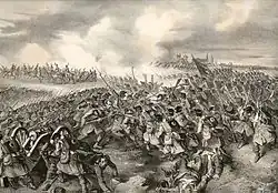 Aus der Richtung von Mócsa erschien die kaiserliche Reiter-Brigade unter dem Grafen von Montenuovo und attackierte erfolgreich die rechte Flanke der ungarischen Husaren. Die über Puszta Harkaly eingreifende Kavallerie-Brigade des Obersten von Montenuovo warf Klapkas Truppen nach O-Szöny zurück. Die kaiserliche schwere Kavallerie fiel dann das 47. Bataillon an, der Kommandeur des 26. Bataillons, Major Beothy eilte ohne Befehl seinen Gefährten zur Hilfe. Die Ungarn wurden von zwei Seiten von vier schweren Kavallerie-Regimentern angegriffen, und die ungarische Kavallerie war in Gefahr vernichtet zu werden, doch die Infanteriebataillone stoppten die kaiserliche Kavallerie durch gezieltes Salvenfeuer. Klapka richtete seine nächstgelegenen Geschütze wirksam auch auf die feindliche Kavallerie, die darauf nach Mocsa zurückfluteten.