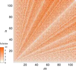 Wir gehen nun zu Restklassen modulo b über. Es ist trivial zu sehen, dass und Vielfache von nach Hinzufügen oder Abziehen von Vielfachen von sind. Genauer sind die Restklassen Vielfache der Restklasse für , und nach Rekursionsvorschrift auch für . Es kann also eine Folge von Multiplikatoren konstruiert werden, die mit und initialisiert ist, so dass