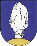 Das Wappen von Erzhausen zeigt im blauen Schilde einen silbernen (weißen) Fels. Der Fels ruht auf einem goldenen (gelben) Berg.