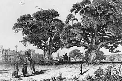 Für Europäer blieb der Esbekieh-Platz dennoch ein romantischer Ort. Als sich zwischen 1831 und 1833 der französische Orientalisten-Maler Prosper Marilhat in Ägypten aufhielt, malte er den Platz mit seinen Bäumen. Das Bild mit dem Titel La place de l’Esbekieh au Caire wurde 1834 auf dem Salon de Paris gezeigt und hatte eine große Wirkung auf den französischen Schriftsteller Theophile Gautier.[22] Er schrieb im Juli 1848 in der Revue des Deux Mondes über dieses Bild: