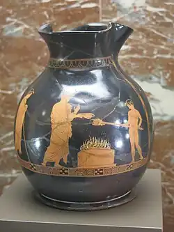 - ↑ Gunnel Ekroth: Altars on Attic Vases: The Identification of bomos and eschara. In: Charlotte Scheffer (Hrsg.): Ceramics in Context. Proceedings of the Internordic Colloquium on Ancient Pottery Held at Stockholm 13–15 June 1997 (= Stockholm Studies in Classical Archaeology. Band 12). Almquist & Wiksell, Stockholm 2001, S. 116.