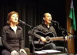 Die deutsch-ukrainische Musikerin und Liedermacherin Lena Wilke gründete in den 90er Jahren an den Uckermärkischen Bühnen Schwedt/O. die Esperato-Band "Ne plu"[16]. Mit ihrer Tochter Shenja (Ĵenja) konzertiert und veröffentlicht sie seit 2009 als Duo "ĴeLe".