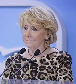 Esperanza Aguirre y Gil de Biedma (* 3. Januar 1952 in Madrid) ist eine spanische Politikerin. Sie war von 2003 bis 2012 Präsidentin der Autonomen Gemeinschaft Madrid und von 2004 bis 2016 Vorsitzende des Partido Popular Madrid. Sie trat 2016 aufgrund der Korruptionsvorfälle in ihrer Partei zurück.