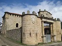 - Der Torre de los Monteros genannte Komplex stammt noch aus dem 15. Jahrhundert. Er besteht aus einem quadratischen Eckturm, welcher erst später überdacht und mit kleinen Einmann-Ecktürmchen (Pfefferbüchsen) versehen wurde, einem kleinen Vorhof und einem beachtlichen, von zwei Rundtürmen mit kreuzförmigen Schießscharten eingefassten Eingangsportal. Der Zugang zum Turm erfolgte ehedem über ein einfaches Portal im Erdgeschoss, über welchem sich ein spitzbogiges Fenster befindet. Deutlich sind die Unterschiede in der Steinbearbeitung zwischen dem spätmittelalterlichen Turmbau (überwiegend Bruchstein) und dem renaissancezeitlichen Torbau (überwiegend Haustein) zu erkennen. Am Torbau haben sich noch drei – später hinzugefügte – barocke Wappenschilde erhalten.