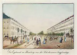 Zwischen 1827 und 1830 wurde sie als Prachtstraße nach Entwürfen von Carl Ludwig Wimmel mit einheitlich im klassizistischen Stil erbauten Häusern und vier Linden-Reihen in der Mitte angelegt. Vorbilder für die 50 Meter breite und 250 Meter lange Straße kamen aus England oder auch aus Berlin (Unter den Linden). Dafür war zuvor der ehemalige Stadtwall zwischen Alster und Dammtor eingeebnet worden (Esplanade = ebene/freie Zone zwischen Stadt und Befestigung); mit dem gewonnenen Erdreich wurde zeitgleich der Neue Jungfernstieg angelegt.
