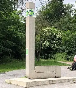 Das obere Ende jeder Stele ziert auf jeder der vier Seiten das Logo der Grünen Hauptstadt Europas, das die Stadt Essen für den Erhalt des Titels als Umwelthauptstadt 2017 kreiert hatte. Es zeigt die grünen Flächen des Stadtgebiets zwischen zwei blauen Bändern, die die Ruhr im Süden und den Rhein-Herne-Kanal im Norden symbolisieren.