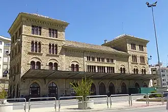 - Das Empfangsgebäude des Bahnhofs Estella ist das einzige, was in Estella von den Eisenbahnanlagen der 1967 stillgelegten Bahnstrecke Vitoria–Estella erhalten blieb. Es ist ein prächtiges Gebäude in Formen der Neuromanik.