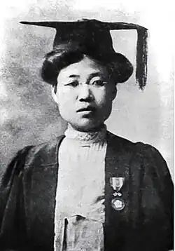 - ↑ A Korean Woman Doctor To Graduate Today From Women's Medical College. The Baltimore Sun, 14. Mai 1900, abgerufen am 17. November 2022.