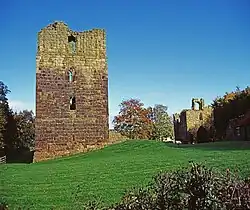 Der älteste Teil der Burg ist der Wohnturm.[1][2] Dieser Turm könnte um 1341 an der Stelle eines älteren, nicht befestigten Hauses der Familie errichtet worden sein. Ein Teil des alten Hauses ist dabei wohl in den neuen, befestigten Turm integriert worden.[1] Es besteht aber auch die Möglichkeit, dass der zentrale Turm bereits Ende des 13. oder Anfang des 14. Jahrhunderts komplett mit Zinnen errichtet worden war. In diesem Falle galt die Erlaubnis zur Befestigung, die König Eduard III. gewährte, nur für die Umfassungsmauer.[2] Um die 1350er-Jahre war die Burg von einer Grundherrschaft umgeben, in der sich Korn- und Walkmühlen, Kalköfen und Kohlenbergwerke befanden.[3]