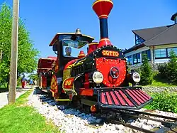 Vom Bahnhof Podlugovi aus kann mit einer Parkeisenbahn eine Reise durch das Areal unternommen werden. Den Namen Podlugovi wählte Stanišići, weil er dort als Gymnasiast mehrmals übernachtete, wenn er den Schnellzug verpasst hatte. Es handelt sich aber nicht um eine originalgetreue Nachbildung des Bahnhofs.[1][3] Nachdem die Schmalspurbahn nach Bijeljina am 26. Mai 1979 stillgelegt worden war, ist im Park wieder eine kleine Eisenbahn entstanden. Der elektrische betriebene Kleinzug ist eine Attraktion, die um den See, durch Tunnel und Brücken fährt. Die Stromzuführung erfolgt mittels einer vergleichsweise seltenen Antriebstechnik über eine Stromschiene in der Gleismitte.