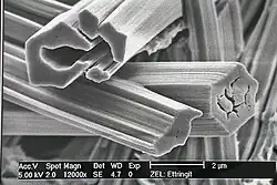 Im Beton-Gefüge kommt es in der Regel zuerst zur Bildung von Monosulfat, der sich dann zu Ettringit umkristallisiert. Dieser Vorgang ist mit einer dreifachen Volumenvergrößerung verbunden und wird als Ettringittreiben oder Sulfattreiben bezeichnet. Ausgelöst wird dieses häufig auch durch Eindringen von sulfathaltigem Wasser in Betonbauwerken. Ettringit kann auch synthetisch als Calciumaluminatsulfat hergestellt werden. Unreiner Ettringit entsteht aus sulfathaltigen Abwässern durch Zugabe von Aluminaten und Kalk.[13] Darum können Sulfate aus Abwasser durch Zugabe von Zement-Aufschlämmungen entfernt werden („Ettringit-Fällung“).