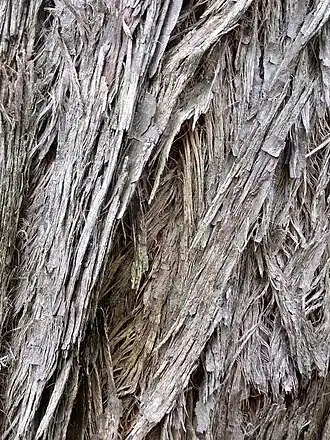 Eucalyptus tenella wächst als Baum, der Wuchshöhen von bis zu 15 Meter erreicht. Die Borke verbleibt am gesamten Baum, ist grau bis rotbraun und fasrig.[3][4] Weder im Mark der jungen Zweige noch in der Borke gibt es Öldrüsen.[4]
