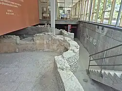 Im Keller der Schule kann man unter einem Schutzbau eine 18 m × 11 m große römische Badeanlage mit Umkleideraum, Laubad, Warm- und Kaltbad besichtigen. Die Therme wurde im zweiten Jahrhundert am Ostrand der ummauerten Siedlung errichtet und wurde bis um die Mitte des dritten Jahrhunderts benutzt. Sie wurde bereits 1929 entdeckt, dann beim Bau des Gymnasiums im Jahr 1962 freigelegt und untersucht.[4]