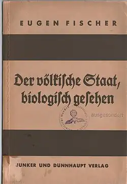 - ↑ Eugen Fischer: Erbe. In: Mein Heimatland. 21 (1934) S. 150. Hier ursprünglich zitiert nach Aly, S. 265.