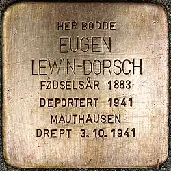 - ↑ Eugen Lewin-Dorsch. In: fanger.no. Falstad-Zentrum, 17. Juli 2018, abgerufen am 11. August 2023 (norwegisch).