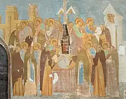 Diese Vision ist auf einigen Ikonen und Fresken in orthodoxen Kirchen dargestellt.