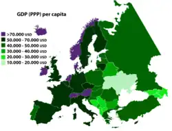 Die Einwohner Europas werden als Europäer bezeichnet. Mit über 740 Millionen Einwohnern, die auf einer Fläche von etwa 10,5 Millionen Quadratkilometern leben,[1] gehört Europa zu den dichtbesiedelten und stark urbanisierten Regionen der Erde.
