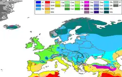 In großen Teilen Westeuropas stehen milden Wintern kühle Sommer gegenüber. In Gebieten, die weit vom Meer, also auch von dessen klimatisch ausgleichendem Einfluss entfernt liegen, sind die Temperaturunterschiede in verschiedenen Jahreszeiten stärker. In den größten Teilen Osteuropas ist das Klima durch das Fehlen des Meeres in unmittelbarer Nähe vorwiegend kontinental geprägt. Kalte Winter und heiße Sommer sind in diesen Regionen vorherrschend.