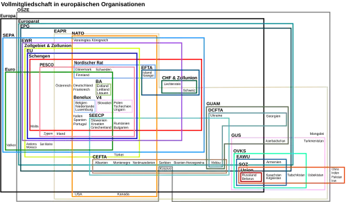 Bedeutende politische Bündnisse Europas sind vor allem der Europarat und die Europäische Union. Die Eurozone besteht als größtes Währungsgebiet auf dem Kontinent.