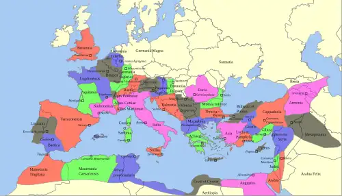 Besonders die griechische Kultur, das Römische Reich und das Christentum hinterließen bis heute ihre Spuren. In der Antike vereinigte das Römische Reich zur Zeit des Augustus erstmals das gesamte südliche Europa zusammen mit den anderen Küstenländern des Mittelmeerraums in einem Großreich. Im Römischen Reich konnte sich die neue Religion des Christentums schnell ausbreiten. Trotz aller Verfolgungen wurde das Christentum in der Spätantike von Konstantin dem Großen gefördert (konstantinische Wende) und unter Kaiser Theodosius I. zur Staatsreligion erhoben – eine Entwicklung, die bis heute fortwirkt. Mit dem Ende der Antike brach im Westen das Imperium Romanum zusammen, bestand im Osten jedoch als (immer mehr griechisch geprägtes) Byzantinisches Reich bis 1453 fort. In dieser Zeit drängten mit der Völkerwanderung eine Vielzahl von meist germanischen Stämmen (Angelsachsen, Franken, Goten u. a.) in das westliche Europa und bildeten den Grundstein für zukünftige Nationen (England, Frankreich, Spanien).