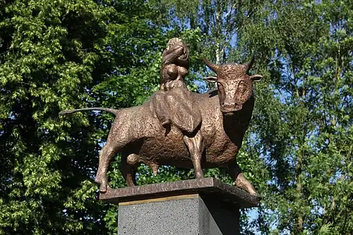 - ↑ Anette Kuhn: Warum sitzt Europa auf dem Stier? Matriarchale Grundlagen von Europa. In: Ministerium für Generationen, Familie, Frauen und Integration des Landes NRW: Frauen verändern EUROPA verändert Frauen. 2009 (Archivierte Kopie ( vom 8. Januar 2015 im Internet Archive)) Mit Verweis auf: Robert von Ranke-Graves: Die Götter Griechenlands. Die klassischen Mythen und Sagen. Reinbek b. Hamburg 1983, S. 58.