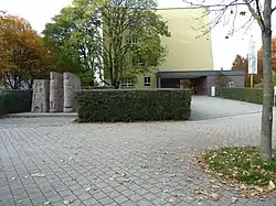 Das Europadenkmal vor der Schule ist ein dreigeteilter Steinblock aus Südtiroler Porphyr mit einer reliefartigen Darstellung der drei geschichtlichen Epochen Europas (Altertum – Mittelalter – Gegenwart) und wurde im Jahre 1961 vom Bildhauer Alois Dorn geschaffen. Die Reliefs zeigen Europa auf dem Stier und mit einem Mann und einer Frau Einigkeit und Freiheit.