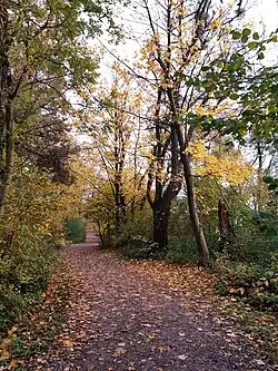 Die Röhrichte und Sumpfwiesen landseitig des Weges bis zum Fußballplatz und dem Gelände der Kläranlage sind unberührte verwilderte Feuchtgebiete. Vorherrschend sind Großseggenrieder.