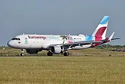 - ↑ a b c Power-Start in Salzburg: Landung des ersten Eurowings Airbus A320 am neuen Standort. Eurowings GmbH (Mutter) Pressemeldung, 11. Januar 2017, archiviert vom (nicht mehr online verfügbar) am 5. Februar 2017; abgerufen am 5. Februar 2017. Info: Der Archivlink wurde automatisch eingesetzt und noch nicht geprüft. Bitte prüfe Original- und Archivlink gemäß Anleitung und entferne dann diesen Hinweis.