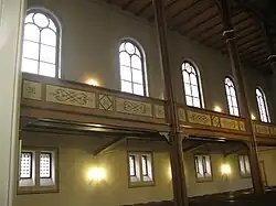 Hinter der Kirche wurde im Jahr 1881 ein Kirchsaal gebaut und im September eingeweiht. Der Saal war ursprünglich als Aula für die Schule gedacht, wurde schließlich aber auch für verschiedene Gemeindeveranstaltungen genutzt.[19]