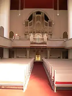 Das Kirchenschiff wurde von Heinrich Straumer ursprünglich mit erhöhtem Altarraum, Taufstein, Altar und Kanzel gebaut und sollte auf den himmlischen König Jesus Christus verweisen. 1908 wurden die Innenwände der Kirche mit heller Farbe gestrichen, die Kirchenbänke und die Emporen waren dunkel gehalten. Das Kirchenschiff schloss mit einem Kreuzrippengewölbe, dessen Rippen in grün auf goldgrund gehalten waren. Die ursprüngliche Ausmalung wurde von den damals bekannten Künstlern Paul Rößler (Dresden) und Gotthold Klemm (München) durchgeführt.