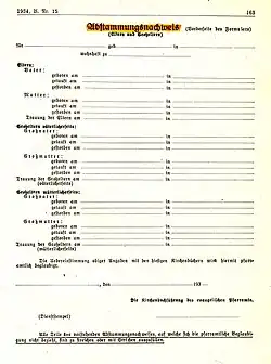 Seit Mai 1933 waren die Thüringer evangelischen Pfarrer und Kirchenbeamten eingebunden in das System der Ausgrenzung von Deutschen jüdischer Herkunft, indem sie auf Verlangen sogenannte Ariernachweise auszustellen hatten. Damit beteiligten sie sich im negativen Ausschlussverfahren an der Entscheidung über den sozialen Aufstieg oder Abstieg im Berufsleben, denn mit dem „Reichsgesetz zur Wiederherstellung des Berufsbeamtentums“ und paralleler Bestimmungen wurden Menschen jüdischer Herkunft von bestimmten Berufen ausgeschlossen.[16] Bald wurden die Pfarrer auch angehalten, die „Anlegung von Ahnen- und Sippschaftstafeln zu fördern“, um „Rassenhygiene“ zu unterstützen.[17] Am 5. Mai 1933 wurde die Kirchenordnung in Paragraf 6 so ergänzt, dass eine Verweigerung der kirchlichen Trauung möglich wurde: Die Thüringer Kirche versagte der Ehe von Christen mit Juden ihren Segen, wenn infolge zu großer Verschiedenheit der Rasse der Eheschließenden die Voraussetzungen für eine sittlich hochstehende eheliche Gemeinschaft fehlen.[18] Dieses erste rassistisch-judenfeindliche Gesetz einer evangelischen Landeskirche gab der tatsächlichen oder behaupteten völkischen Zugehörigkeit eines Kirchenmitglieds Vorrang vor der Geltung der biblisch-ethisch begründeten Sakramente und brach damit die lutherischen Bekenntnisschriften. Dagegen bildete sich im November 1933 zunächst der Pfarrernotbund, im Mai 1934 dann die Bekennende Kirche.