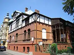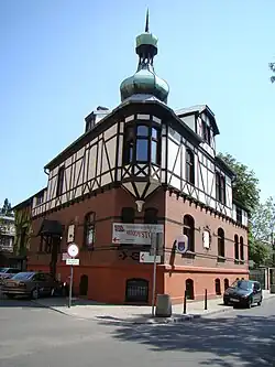 Bei dem Kirchengebäude handelt es sich ursprünglich um ein Wohngebäude, das 1899 erbaut wurde.[1] Das neobarocke Bauwerk besitzt im Erdgeschoss eine rote Ziegelfassade, das Obergeschoss besitzt hingegen eine Fachwerkfassade, die zwischen dem Fachwerk weiß verputzt ist. An der Straßenkreuzung befindet sich ein Eckerker aus Fachwerk mit einer barocken Zwiebelhaube.