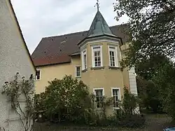 Der zweigeschossige Neurenaissance-Bau mit polygonalem Erkerturm steht neben der evangelisch-lutherischen Katharinenkirche aus den Jahren 1891/92.