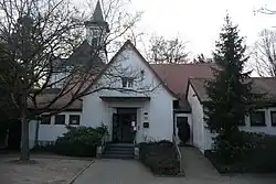 Das Gemeindehaus der Evangelischen Dreifaltigkeitsgemeinde, erbaut 1930, befindet sich unmittelbar neben der Evangelischen Dreifaltigkeitskirche an der Heidelberger Landstraße 311.